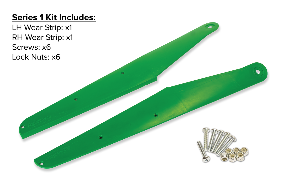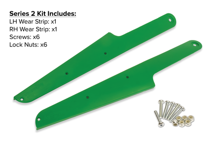 A sleek, highly durable plastic replacement wear strip for longer life on poly corn heads. Designed to prevent premature wear or repair already damaged snouts. Each kit includes 1 left strip + 1 right strip + mounting hardware.